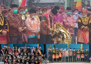 Suarakerinci.com, KERINCI- Sekretaris Daerah (Sekda) Kabupaten Kerinci, Asraf, bersama Ketua DPRD Edminuddin disambut meriah dan kalungan bunga saat menghadiri Kenduri sko/Kenduri Adat 5 Desa Jujun, Kecamatan Keliling Danau, Minggu (21/2/2021).